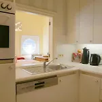 Une cuisine au studio comprend un four. Strandhotel avec des repas de la cuisine européenne attend les hôtes à seulement 5 minutes de marche. L'hébergement, comprend également un jardin.